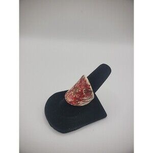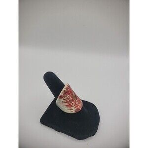 This vintage ring in size 5 features a beautiful beige and red splatter design, making it a unique and eye-catching piece of costume jewelry. The ring is perfect for special occasions like engagements, weddings, anniversaries, and birthdays, adding a touch of charm and art to the wearer's ensemble. With its vintage appeal and unique color scheme, this ring is sure to be a standout accessory for any fashion-forward individual looking to make a statement.