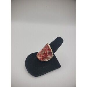 Vintage Ring Size 5 Beige Red Splatter Jewelry Costume