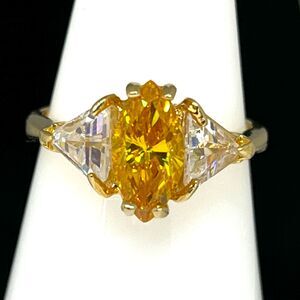 Vintage Yellow Marquis Cut Cubic Zirconia Ring With CZ Accents 18KT Gold Electroplate