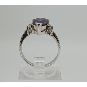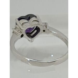 Vintage Ring Size 6 Silver Tone White Gold Plated Purple Sim Diamond CZ Heart