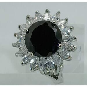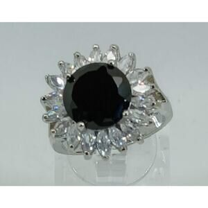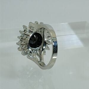 Vintage Ring Size 6.25 Silver Tone White Gold GP Black CZ Cluster Cocktail NOS