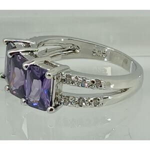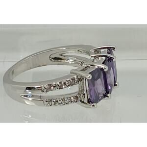 Step back in time with this vintage-inspired Purple Simulated Diamond CZ White Gold Plated Silver Tone Ring. Crafted with rectangular and round cut stones, this ring is a true statement piece measuring 8mm/0.31" wide with a unique split band design that tapers to 2.8mm/0.11".