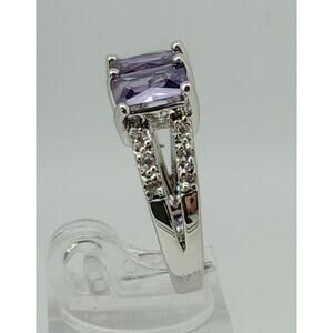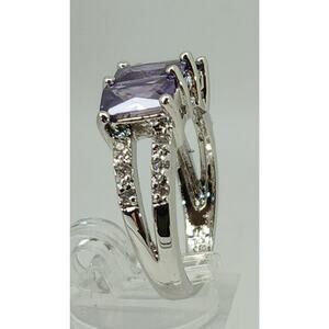 Vintage Ring Size 7.25 Silver Tone White Gold Plated Purple Sim Diamond CZ