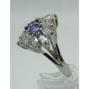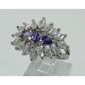 Vintage Ring Size 7.5 Silver Tone White Gold GP Purple CZ Cluster Cocktail NOS