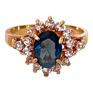 Vintage Ring Austrian Crystal With Crystal Accents 14K Gold Plate Gorgeous 14K Gold Plate featuring a blue Austrian crystal with crystal accents. Vintage Mid-Century Design Genuine Vintage Never Worn Before! Made in the USA