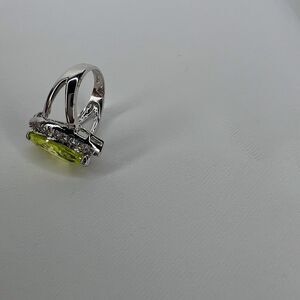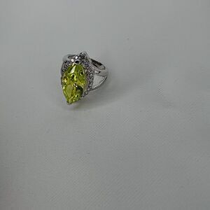 This vintage ring is a stunning piece that will make a beautiful addition to any jewelry collection. The oval eye shape is accentuated by the clear green crystal CZ stone, creating a dazzling effect that is sure to turn heads. The silver plate adds to the overall elegance of the ring, making it perfect for any formal occasion.