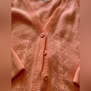 Vintage Risa pink Cardigan Sweater. Size L. Made of 100% Acrylic. Buttons up the front with matching pink buttons.Nice condition.