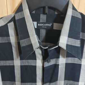 Vintage Riscatto Italia Black and Gray Casual Button Front Down Shirt