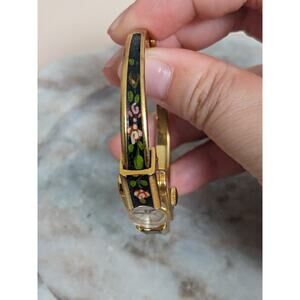 Vintage Ritma Dainty Gold Tone Manual Watch Black Enamel and Flowers Working