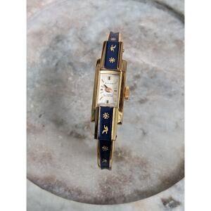 Vintage Ritma Gold Tone Manual Watch Deep Blue Enamel Gold Flowers &Bird Working