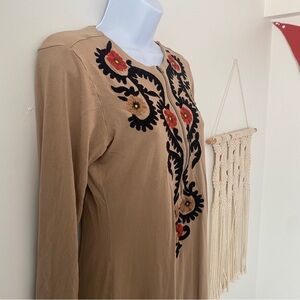 Vintage Ritu Kumar Tan Long Sleeve Boho Dress Red and Black Embroidered Size 4