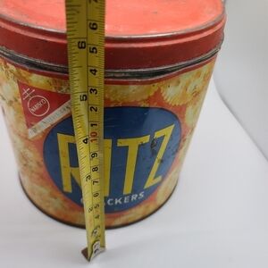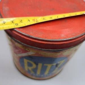 Vintage Ritz Tin Container. Some rust, wear and denting, as shown in pic. Selling as is.