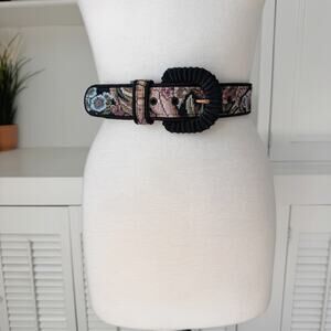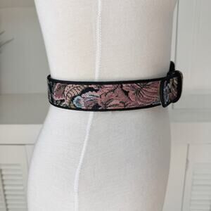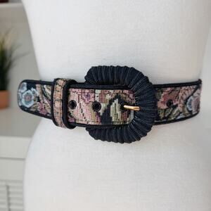 Vintage Ritz Floral Tapestry Leather High Waist Belt Size XS