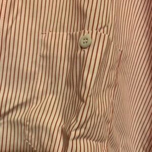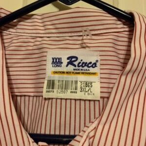 Vintage Rivco Size XXXL Long Red White Stripe Long Sleeve Button Shirt. Work/Uniform style shirt. 65% polyester/35% cotton. 31” armpit to armpit, 35” long. New without tags. This shirt has plastic from tags going through the collar making a small hole.