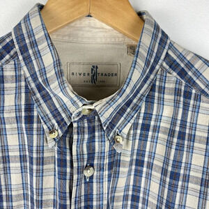Vintage River Trader Button Down Shirt Men’s L Plaid Cotton Casual Long Sleeve