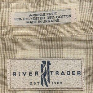 Vintage River Trader Checkered Short Sleeve Button Down Shirt Xxl Beige Cotton B