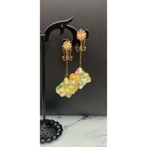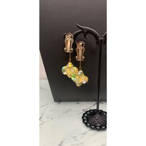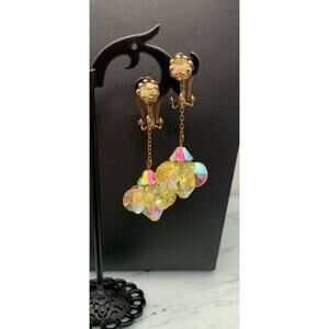 Vintage Rivoli Crystal Clip On Earrings Aurora Borealis Dangle Mid Century Glam