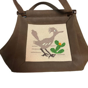 Vintage Road Runner Purse Tote Bag Embroidered Dessert Cottage Core Wooden