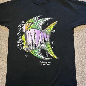 Vintage Roatan Honduras T-Shirt Fish Graphic 90s Made in USA Fruit of the Loom L