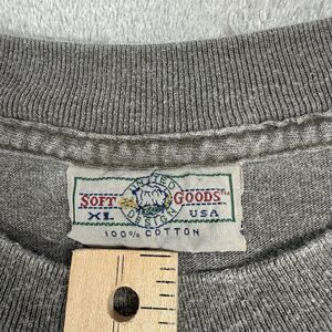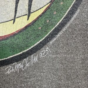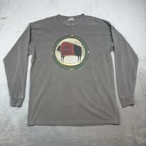 The Vintage Rob McClellan Shirt for men in XL size is a classic crew neck long sleeve t-shirt in gray color. Made of cotton knit fabric, this shirt features a graphic print of Native American art, reflecting a theme of art, animals, and 90s design. With a regular fit and easy care instructions, this t-shirt is suitable for all seasons and is proudly made in the United States by United Designs. Perfect for those looking to add a touch of vintage style to their wardrobe.