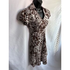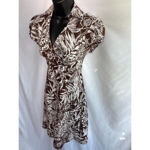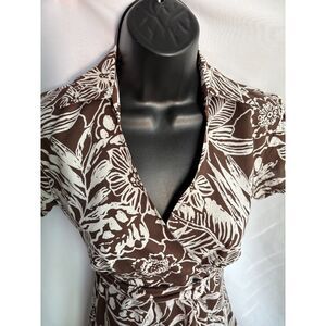 Vintage Robbie Bee Floral Brown Wrap Dress Size 6 Petite Romantic Date Flare