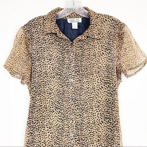 Vintage Robbie Bee Leopard Silk Button Front Maci Dress Sz 6