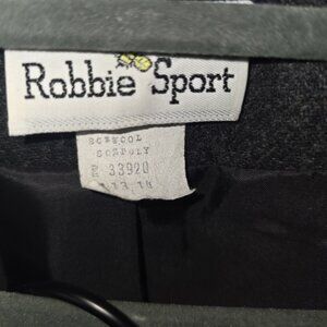 Step into timeless style with this vintage Robbie Sport women's skirt suit set, size 13/14. Featuring a structured blazer and coordinating skirt, this gray suit is made with a cozy 80% wool and 20% polyester blend—perfect for cooler seasons and polished enough for the office, interviews, or retro-themed events.