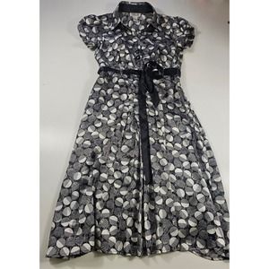 Vintage Robbie bee silky look polka dot dress size 8 short sleeve side zip ^