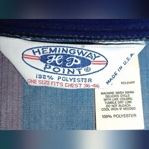 Vintage Robe, vertical stripes of blue, green, and burgundy, in great shape, maybe never worn, a lightweight fleece feeling fabric, 100% polyester, 3/4 length sleeves, belt, 2 pockets. Chest size 36"-46".