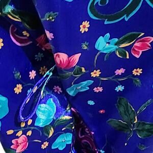 Keywords: women's womens misses ladies robes lounge housecoat housecoats vtg early 2000s 1990s nineties bright bold colorful multi-color multicolor printed pattern patterned comfy comfortable sheen shiny polyester machine wash washable flowers