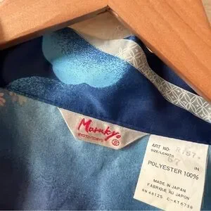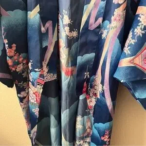 Vintage Marukyo Kyoto Japan 1960's Blue Floral Long Satin Kimono Robe