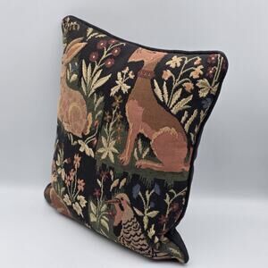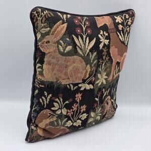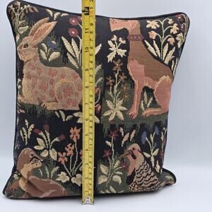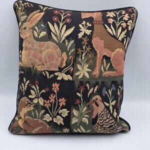 Vintage Robert Allen Wood Animal Tapestry Throw Pillow Rabbit Dog Bird Otter 12"