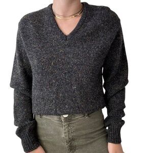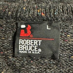 Vintage Robert Bruce Gray Donegal Fleck Wool Chunky V Neck Preppy Sweater Sz L