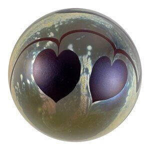 Vintage Robert Eickholt Art Glass Paperweight 1984 Iridescent 2 Hearts Signed 3"