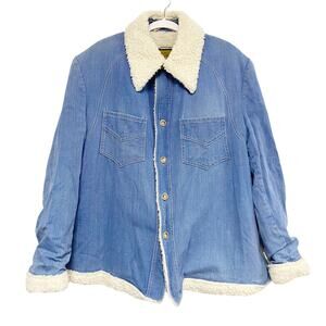 Vintage Robert Lewis Mens Size 44 Denim Sherpa Button Up Shirt Jacket Shaket