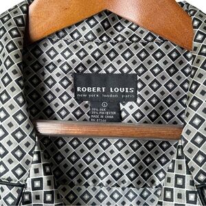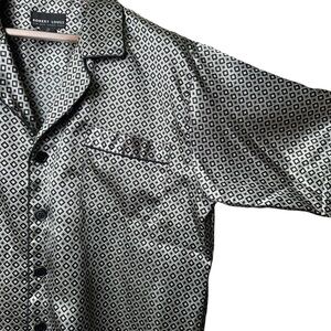 Vintage Robert Louis Large Silk Diamond Pattern Sleep Shirt Button Up Men's 90s