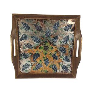 This vintage serving tray from Robert M. Weiss features a reverse-painted grape cluster design, offering a unique touch to your serving collection. With its sturdy wooden construction and intricate artwork, it serves both functional and decorative purposes. The tray's vintage appeal adds a touch of elegance and sophistication to any setting.