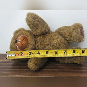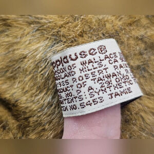 This vintage Robert Raikes plush bear is a charming addition to any collection. With its warm brown color and amber eyes, this 9-inch bear is perfect for all occasions. It features 5-way jointed movement and is made of synthetic fiber and wood. The bear is an original licensed reproduction from the Applause Wallace Berry franchise and was manufactured in Taiwan in 1985. The bear comes without packaging and is in excellent condition.