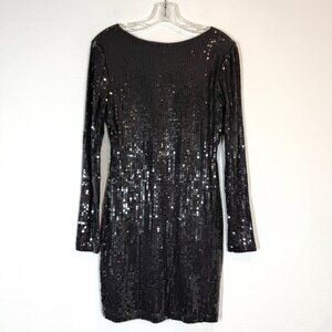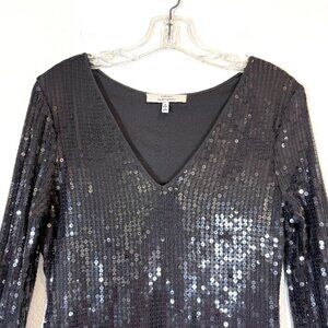 Vintage Robert Rodriguez Sequin Dress Mini Long Sleeve Medium Charcoal Gray Y2K