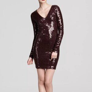 Vintage Robert Rodriguez Sequin Dress Mini Long Sleeve Size Medium as seen on Gossip Girl Georgina Sparks in a Burgundy Color.