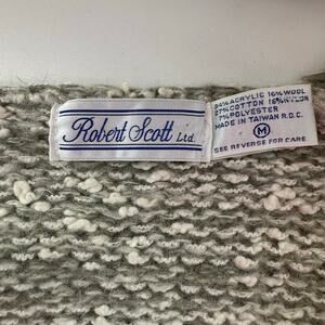 Vintage Robert Scott Gray V-Neck Cardigan 1980s Taiwan Retro Medium