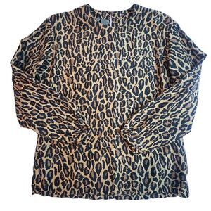 Vintage Robert Stock Blouse Women Medium Leopard Print All Over Silk Long Sleeve