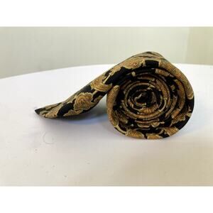 Elevate your style with this vintage Robert Talbott necktie. Hand-sewn with 100% silk, this tie features a sophisticated paisley pattern in black, gold, and orange. Made in the USA, it's a perfect addition to any wardrobe. Excellent pre-owned condition.