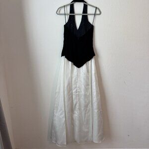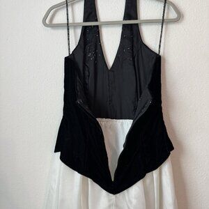 Vintage Roberta Dress Size 5/6 1990s USA Black & White Velvet Halter Pearls