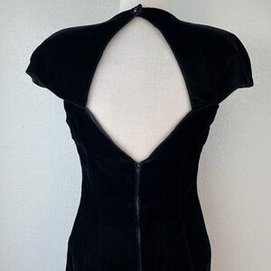 Vintage Roberta Womens Black Velour Evening Dress with Open Back Size 13-14