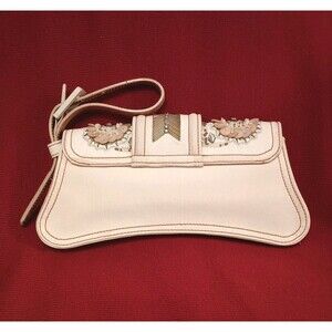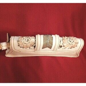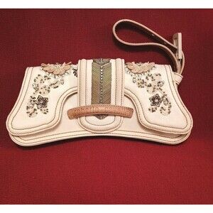 Vintage Roberto Cavalli Canvas Clutch Embellished Cream RARE Read