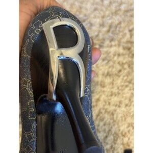 Vintage Roberto Cavalli RC Monogram Logo Heels Sz 38 Denim Gold Metal