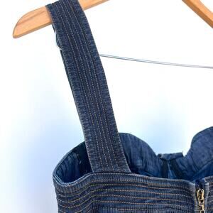 Vintage Roberto Cavalli Y2K 2000s Denim Jean Bustier Mini Dress 44 Size 8