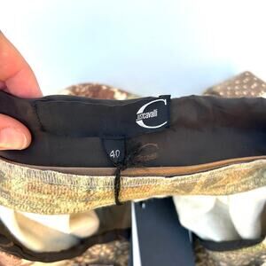 NWT vintage Just Cavalli wool patchwork midi skirt. Bohemian luxe earth-tone palette with side pockets and a full pleated silhouette. Rare Cavalli archive find, IT 40 (fits like US 4–6). Perfect styled with tall boots, cozy knits, or layered jewelry for fall/winter. Made in Italy.