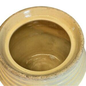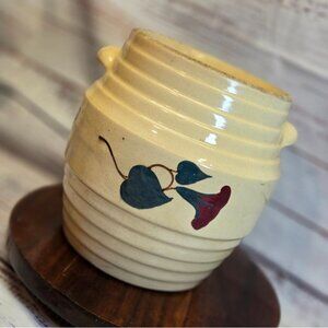 This vintage Robinson Ransbottom crock features a charming Morning Glory design. Originally used for Spaulding's Cookies, it's a unique piece of pottery for collectors or decor enthusiasts.